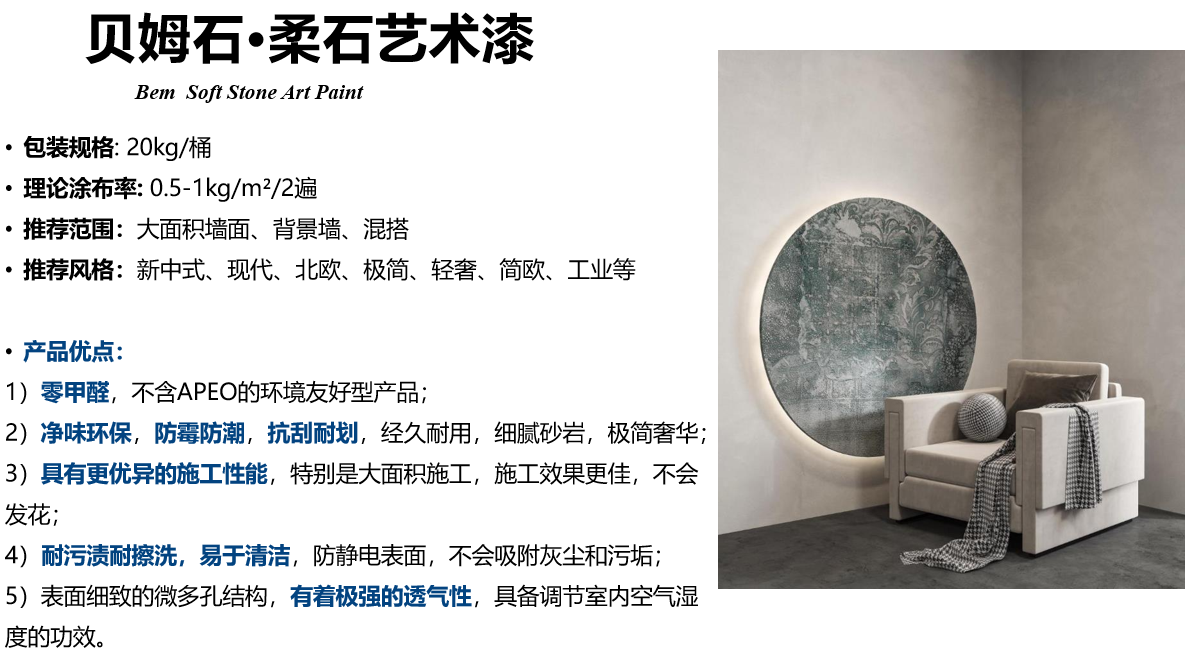 贝姆石·柔石艺术漆是一款注重自然质感,将极简主义精髓诠释得恰到好处的高端艺术质感装饰材料。该