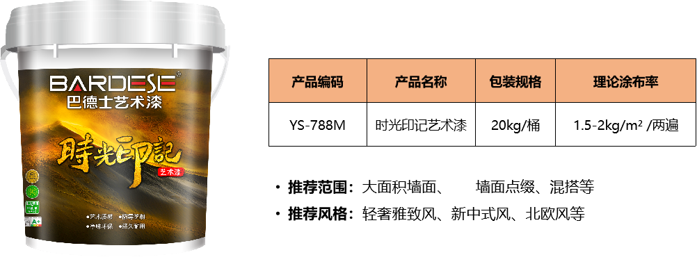 施工材料:艺术漆渗透加固底漆、厚浆型专用含砂底漆、时光印记艺术漆、净味防尘面漆